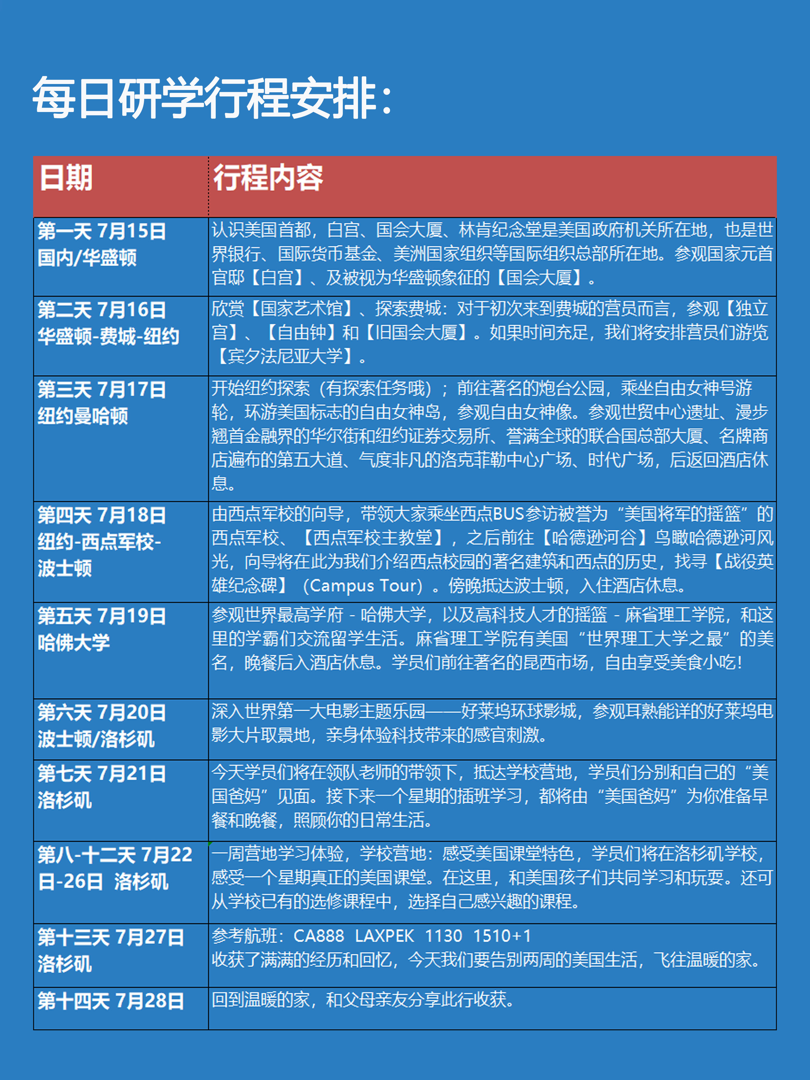 如果孩子在成都,昆明等(非北京城市出发),由机构统一给配送国内的联运机票,往返只交300元(统一国航)。(比如:孩子从北京往返美国机票机构承担,但是7月15日从所在地到北京及7月28北京返回当地城市机票自行承担,往返只收300元)由机构统一购买、统一在北京出发。