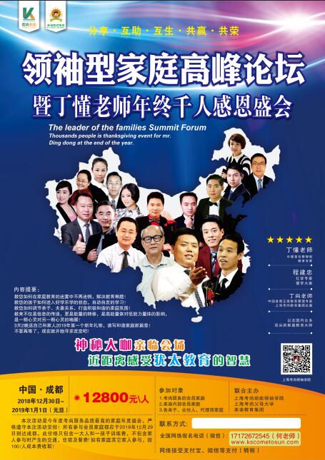 2019《领袖型高峰论坛》 时间:(2018.12.30——2019.1.1) 地点:成都海龙山庄 度假村 【课程亮点】 ... 详情